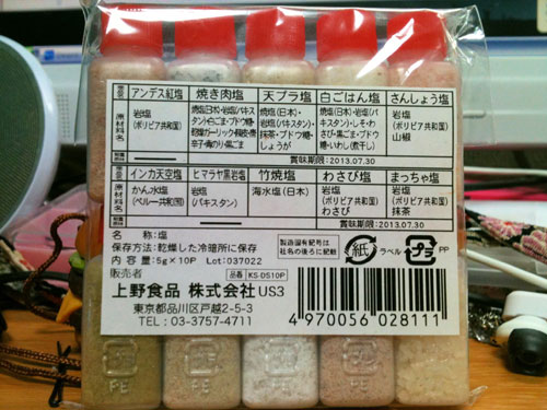 裏の成分表の、抹茶塩と天ぷら塩を分けた理由がいまいちわからねぇ